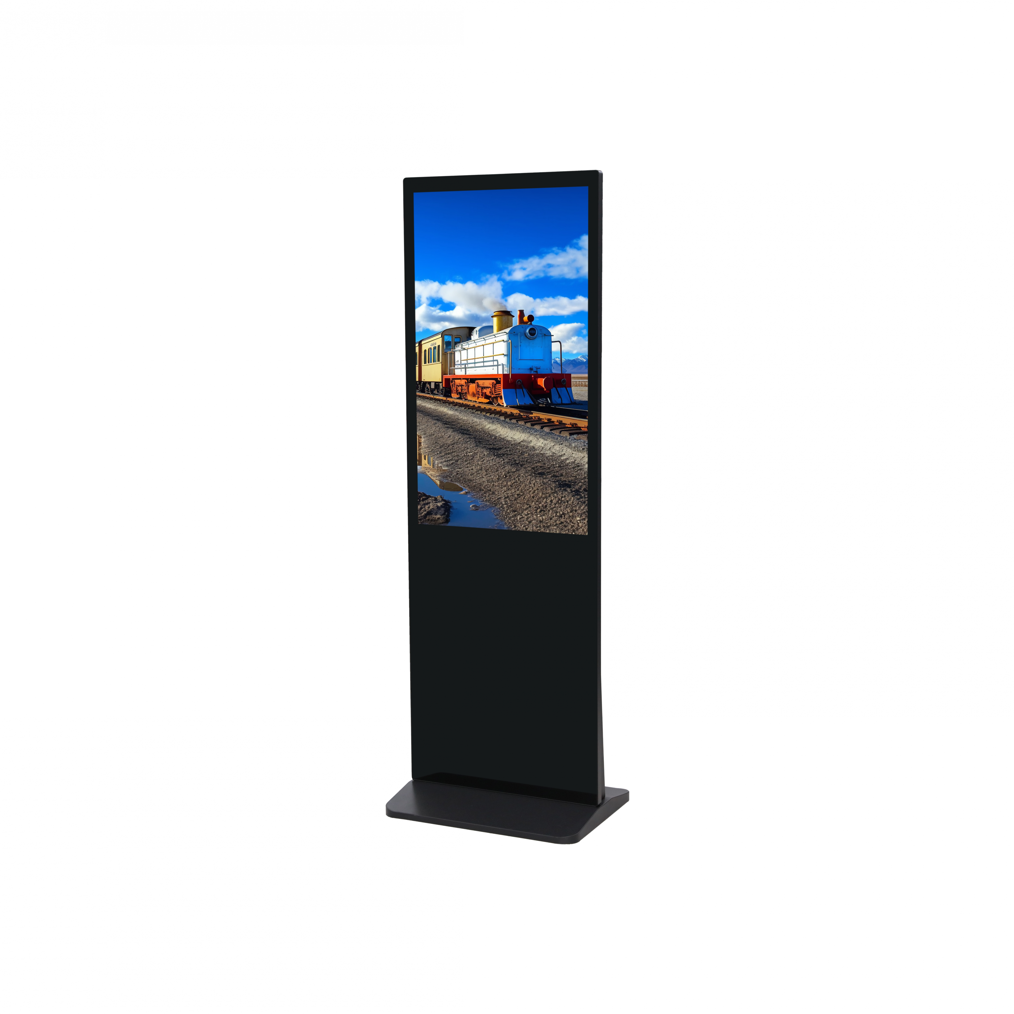 monitor wolnostojący w metalowej obudowie z podstawą pełną